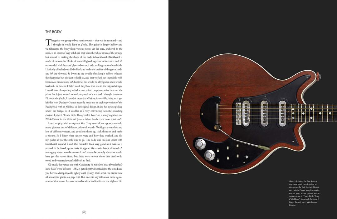 I mean, it's a book about the Red Special. It has reminiscences about its construction and use; it has high quality photos of its workings. It has a section on replicas. It has only a very few things you've likely not seen or heard before, but it's a beautiful celebration of a unique instrument, and more than that has insights into the mind that made and played (plays) it.